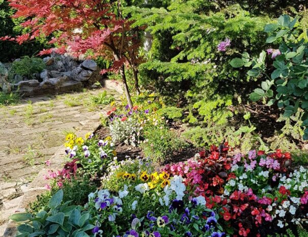 Imanje "Vila Ravijojla" je prava riznica raznovrsnog drveća, cveća i začinskog bilja. U letnjim mesecima, naše prelepo dvorište je idealno i za organizovanje manjih proslava, za ljude koji žele autentično veselje, u bajkovitom ambijentu.