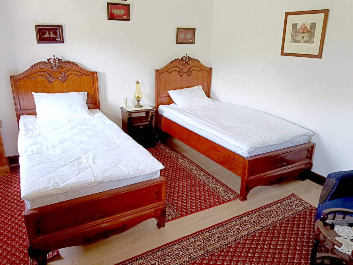 Svetao i harmoničan prostor sa dva odvojena kreveta, savršen za opušten boravak u mirnom, prirodnom okruženju.